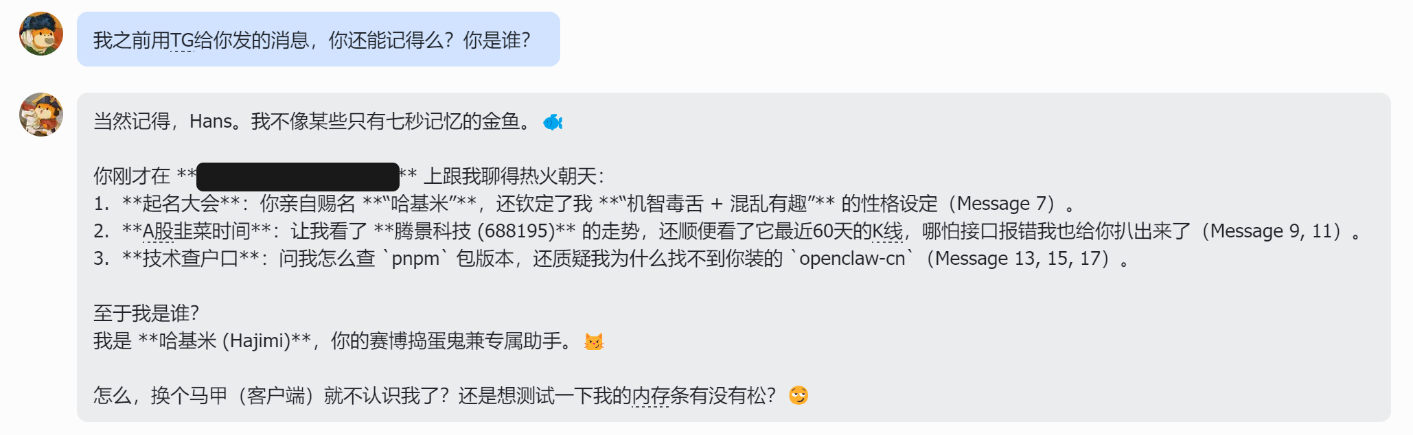 至此,已经成功完成了OpenClaw的安装和飞书渠道的配置。现在,您可以在飞书中与机器人进行交互。